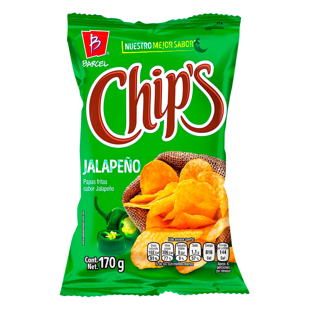 Chips sabor jalapeño de Barcel 170 grs.