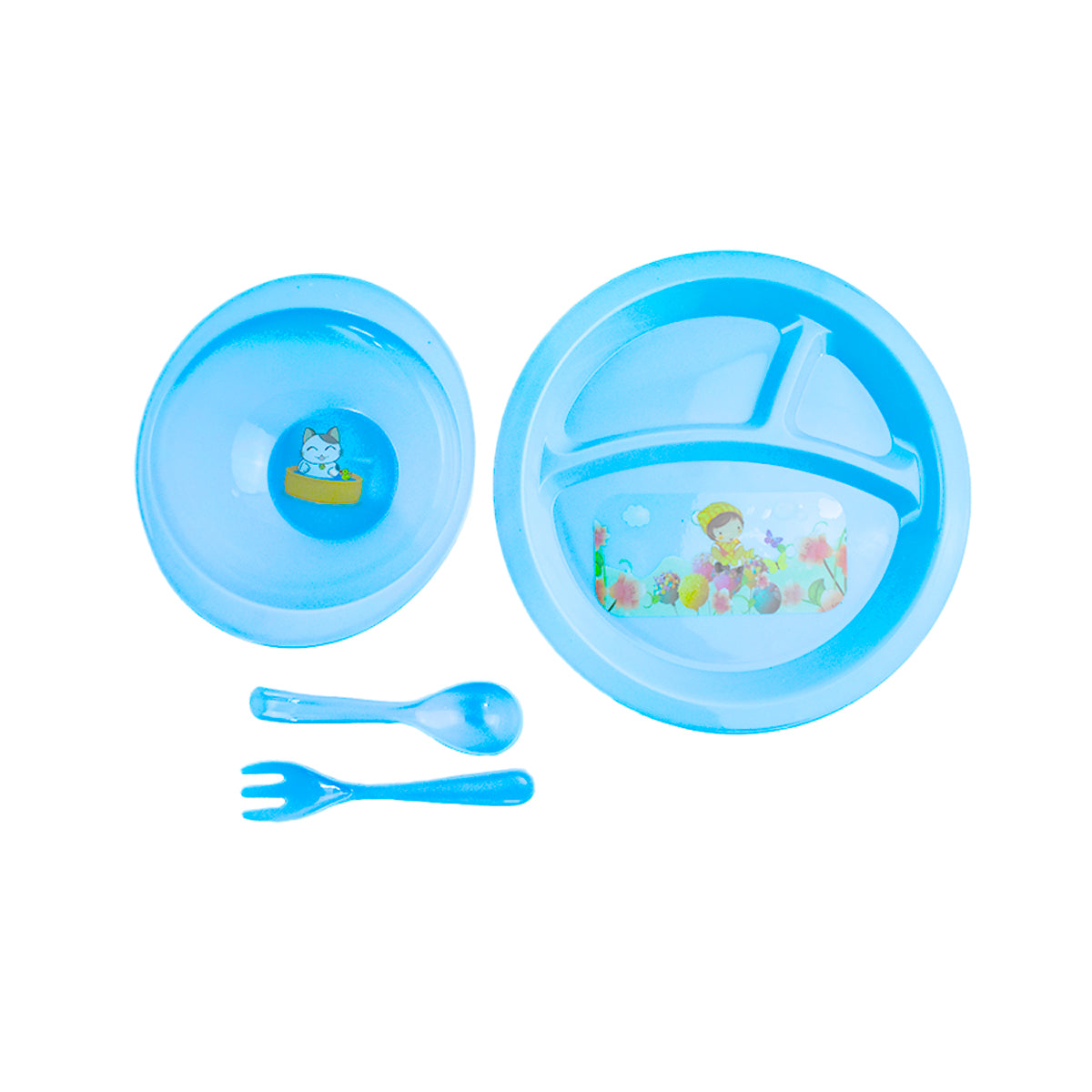 Set de cubiertos tazón y plato para bebé.